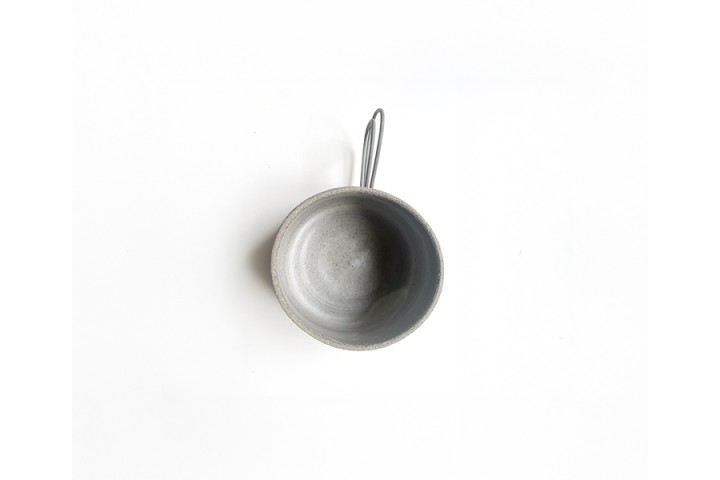 Γκρι stoneware κούπα με χερούλι από σύρμα, με λευκό σατινέ γυάλωμα εσωτερικά.